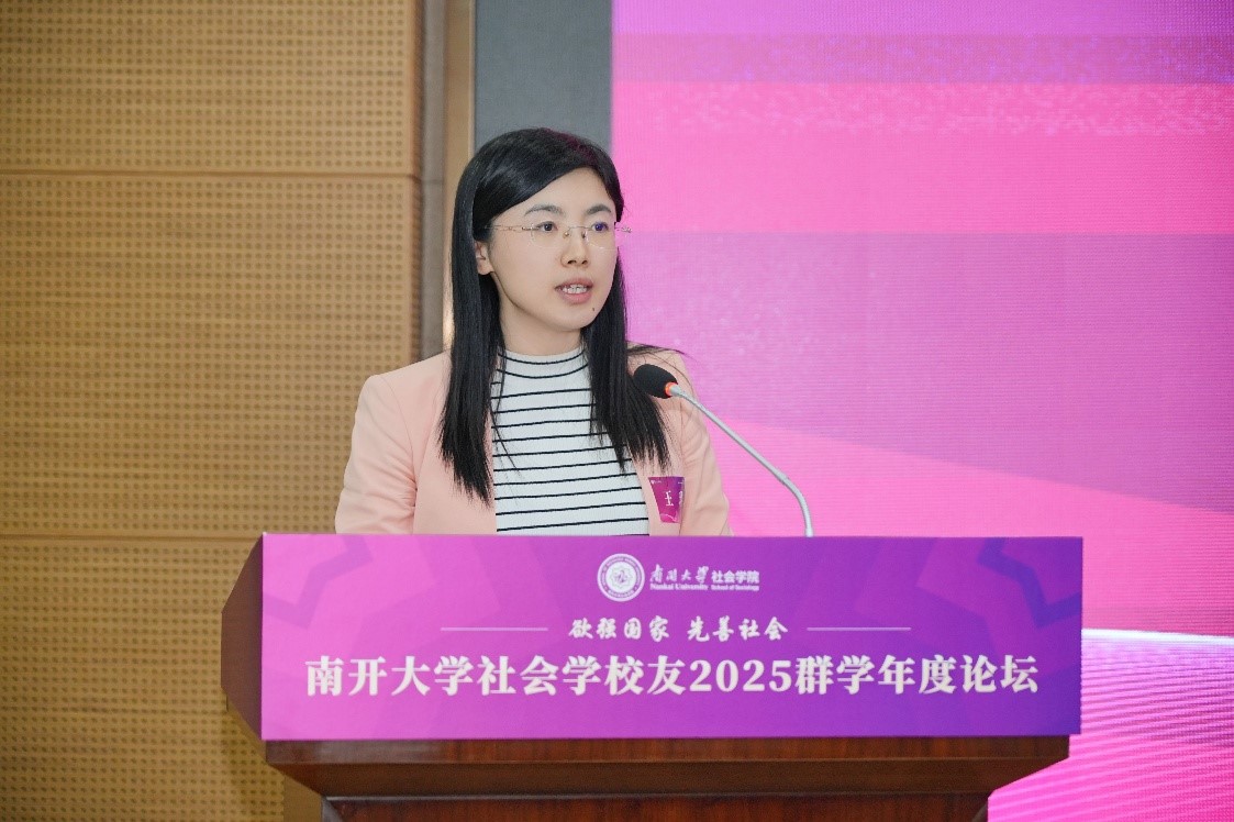 2024级社会工作与社会政策硕士研究生王美晨同学作为获奖学生代表发言,她表示,将秉持知行合一理念,传承南开精神,以专业力量服务社会,不负时代使命。