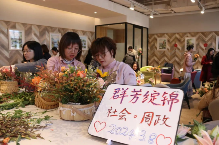 工会联合举办了的“群芳绽锦”花艺美育活动。两院女教工和女同学在花香弥漫中同庆节日、共品艺术,畅聊收获、感悟生活,陶冶情趣、舒缓压力。