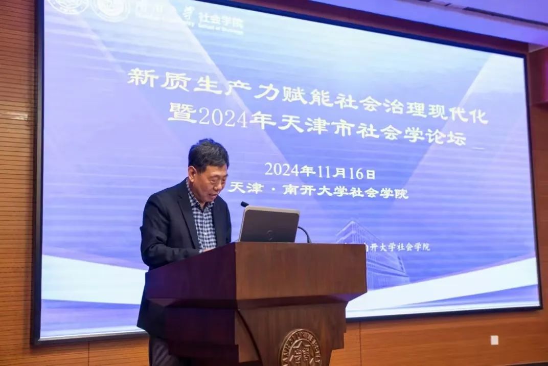 张宝义在致辞中,代表天津市社会学学会感谢南开大学对本次学术年会的大力支持,表示本次会议旨在贯彻党的二十大精神,助力中国特色社会学研究,服务于社会主义现代化建设,期待学者们积极发表新观点,为学会研讨的成功和中国特色社会主义社会学研究新进程贡献力量。