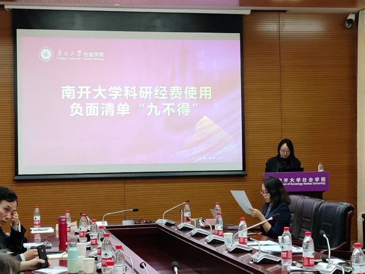 副院长张宏伟传达了《南开大学科研经费使用负面清单“九不得”》文件精神,要求全体教师要严格遵守规定,共同营造风清气正的科研环境。