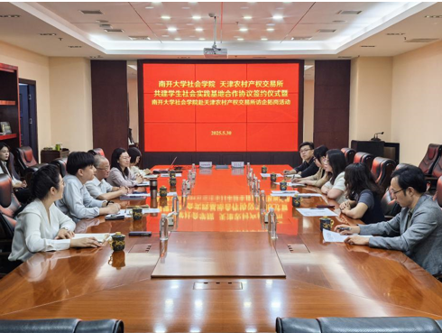 党委书记宋媛带队前往天津产权所属天津农村产权交易所(简称“天津农交所”)开展“访企拓岗”专项调研交流活动。同步举行《共建学生社会实践基地合作协议》签约仪式,天津产权党委副书记、总经理赵辉出席活动。