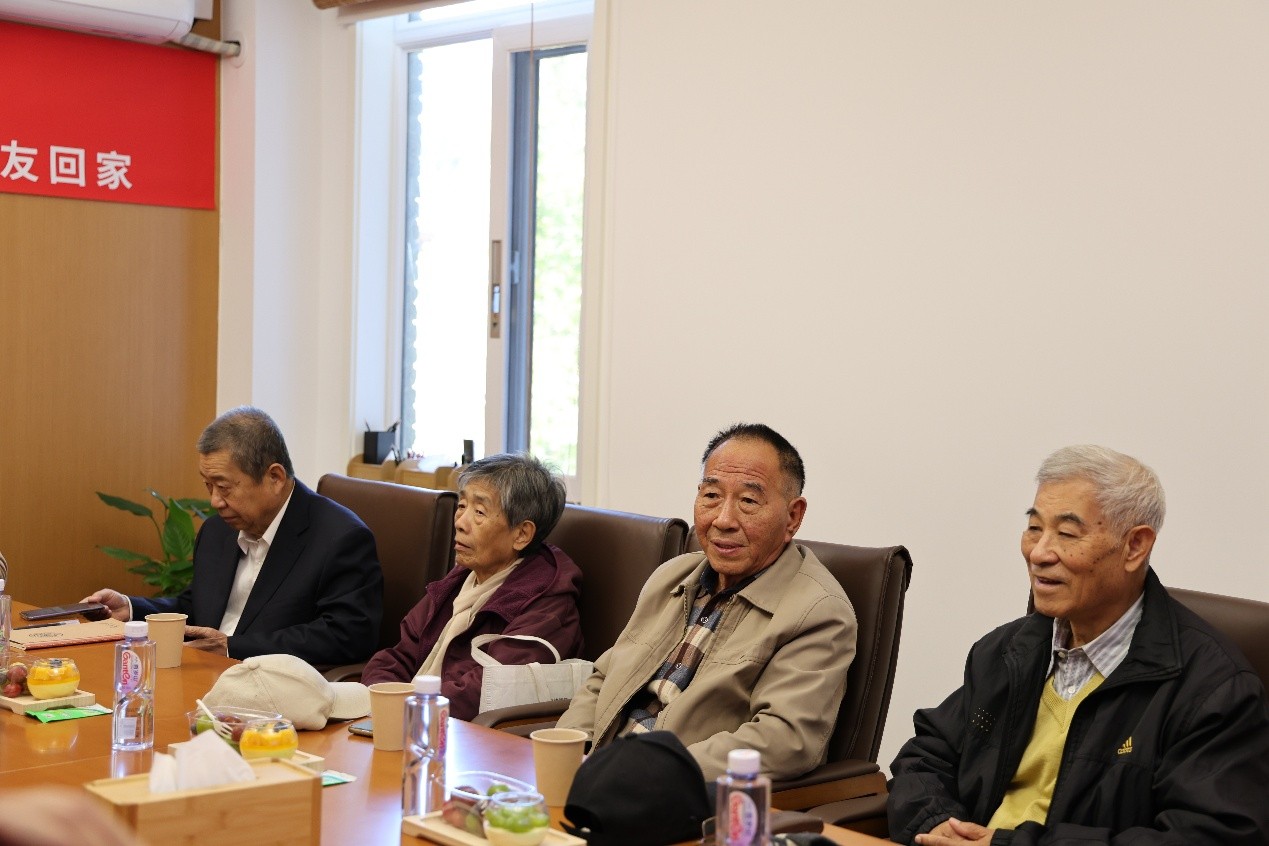 在校友们大学期间居住过的学生宿舍——文科创新楼举办座谈会。院长张文宏、副院长张宏伟出席座谈会,老教师代表侯钧生、白红光、郭大水、刘馨受邀一并出席。