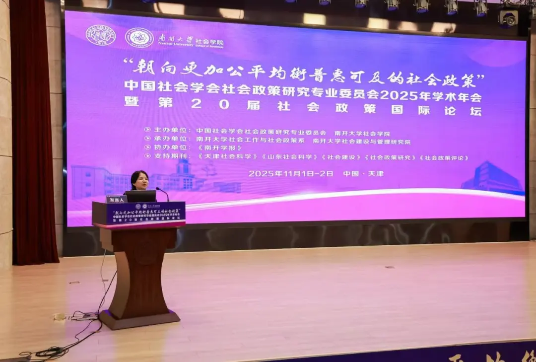 2025年11月2日,历时两天的中国社会学会社会政策研究专业委员会2025年学术年会暨第20届社会政策国际论坛于南开大学津南校区圆满落下帷幕。本次盛会以“朝向更加公平普惠可及的社会政策”为主题,来自国际国内高校、科研院所和学术期刊共计76家单位共计180余名专家学者和师生,围绕社会政策多个核心领域的前沿理论、方法创新与实践应用进行了深入研讨,共商社会政策发展大计,为新时代社会政策体系的全新构建贡献了宝贵的学术智慧与实践方案。