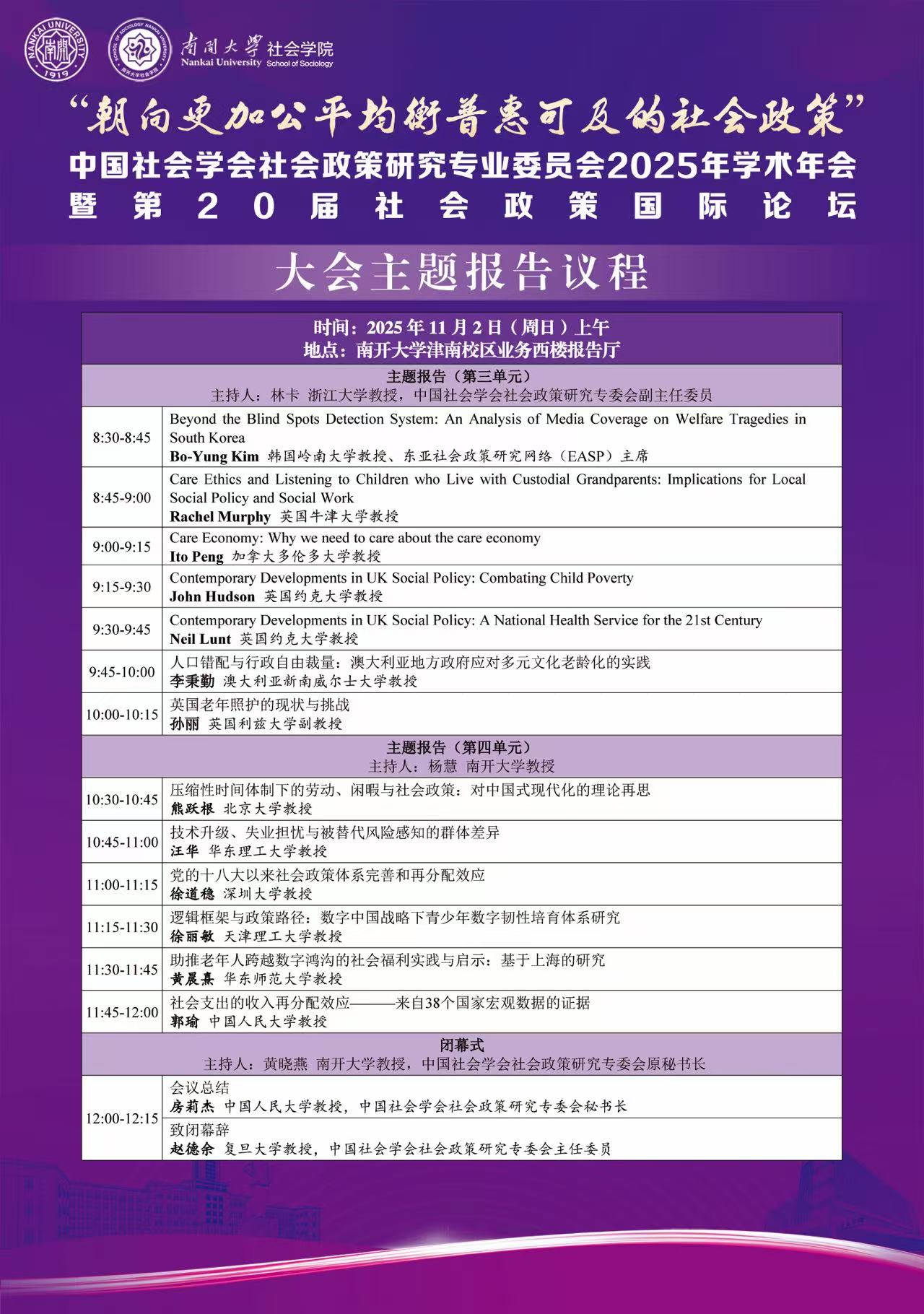 中国社会学会社会政策研究专业委员会2025年学术年会暨第20届社会政策国际论坛