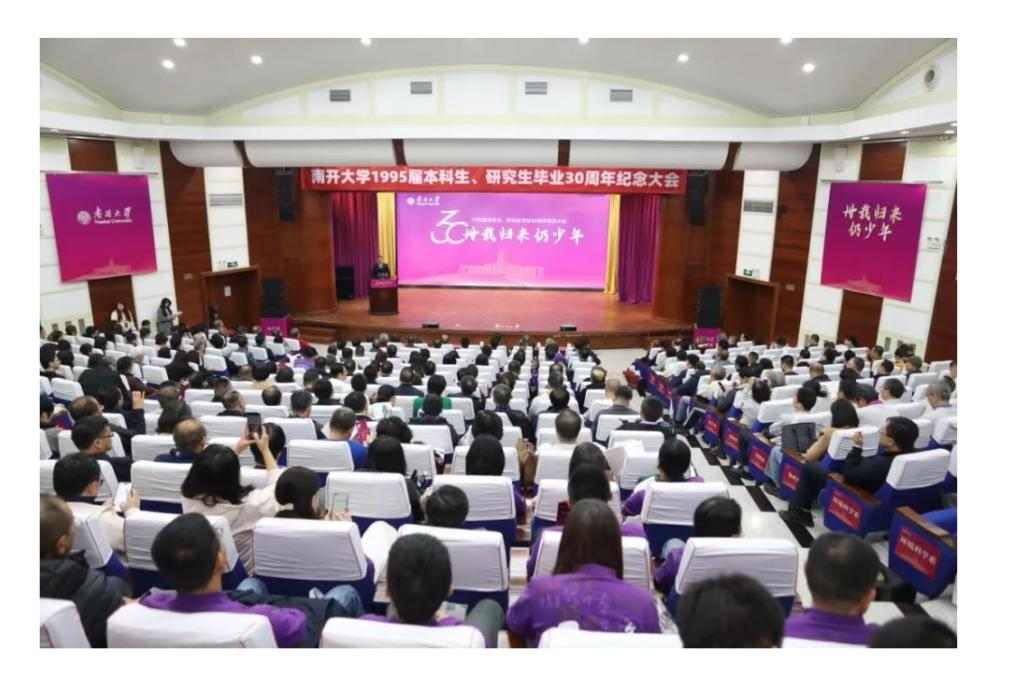 金秋十月聚南开,共忆年少求学时。10月19日,伴随着南开大学建校106周年的喜庆氛围,1995届本科生、研究生毕业30周年纪念大会在八里台校区主楼小礼堂举行。近400名校友从五湖四海回到母校“省亲”,共赴一场跨越30年的青春之约。