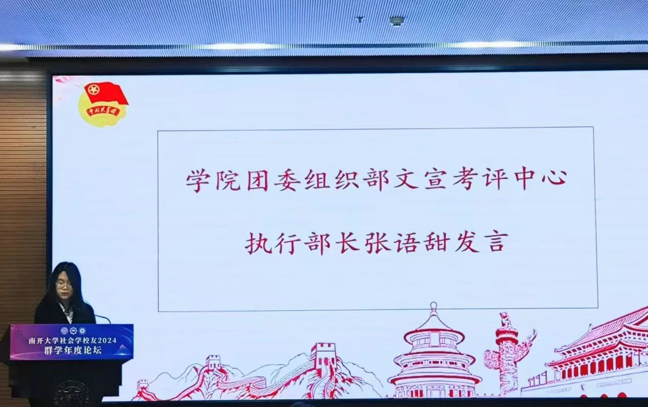 团委组织部文宣考评中心负责人张语甜发言,介绍了入党推优、五四评优等工作的工作要点以及文宣考评中心与各班团支书的对接部分,表达了与各班团支书加强交流沟通的期许。