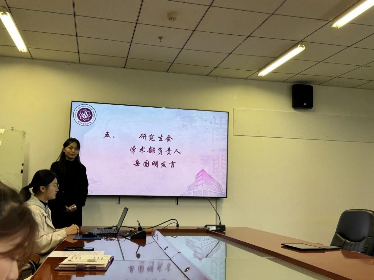 研究生会主席王美晨指出研究生会作为桥梁角色的重要性,承诺将秉承服务宗旨,深化学术交流,丰富校园文化生活,加强内外部联系,倾听同学心声,携手全体成员共同努力,为研究生群体创造更加多彩、有意义的学习生活环境。